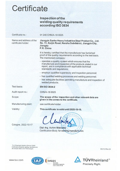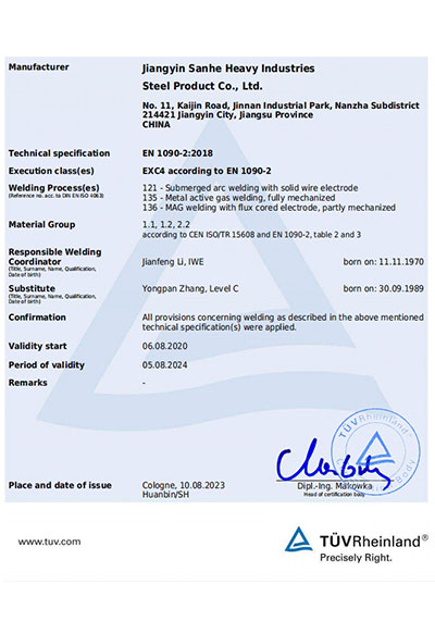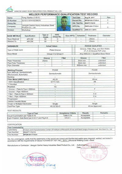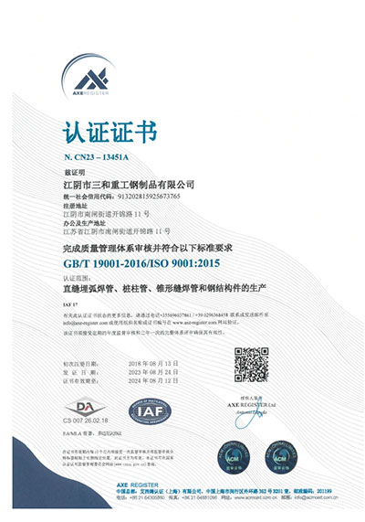 江陰市三和重工鋼制品有限公司成立于2012年3月,總投資1.2億,坐落于江蘇省江陰市南閘錦南工業(yè)區(qū),占地4萬(wàn)平方米,廠(chǎng)房面積3萬(wàn)平方米。專(zhuān)業(yè)從事大口徑厚壁直縫埋弧焊接(LSAW)鋼管、方管、錐管,RBE卷制埋弧焊接鋼管的研發(fā)、生產(chǎn)和銷(xiāo)售。公司憑借著嚴(yán)謹(jǐn)?shù)漠a(chǎn)品質(zhì)量管理,先后通過(guò)了ISO三體系認(rèn)證,RS、BV等船社級(jí)工廠(chǎng)認(rèn)證,同時(shí)取得了CE CPR,API2B等歐美地區(qū)資質(zhì)認(rèn)證。公司擁有一條完整的,可以生產(chǎn)單支長(zhǎng)度達(dá)到12米的JCO直縫埋弧焊鋼管生產(chǎn)線(xiàn)(品牌:美國(guó)林肯) ,3套卷管生產(chǎn)線(xiàn)以及異型管生產(chǎn)線(xiàn)。公司主要產(chǎn)品有各種大小厚壁直縫埋弧焊管、卷管、方管、矩形管、錐管、多邊形管等,主要以厚壁管為主。可按國(guó)家標(biāo)準(zhǔn)GB9711 、GB50250 系列 ,國(guó)際標(biāo)準(zhǔn)API? SPEC 2B及EN10210、EN10219、EN10208、 A671、A672等生產(chǎn)各種規(guī)格鋼管,年綜合產(chǎn)能達(dá)20萬(wàn)噸,產(chǎn)品廣泛應(yīng)用于海上 石油鉆井平臺(tái)、輸煤漿、輸水、特高壓輸電鐵塔電,石油化工、高層建筑鋼結(jié)構(gòu)建筑工程、大型海洋碼頭樁管等領(lǐng)域。公司擁有一支由我國(guó)制管行業(yè)領(lǐng)先的技術(shù)團(tuán)隊(duì),并與國(guó)內(nèi)制管技術(shù)與工藝方面的專(zhuān)家、科研院所建立了密切的合作關(guān)系, 研發(fā)能力處于國(guó)內(nèi)先進(jìn)水平,專(zhuān)門(mén)生產(chǎn)厚壁鋼管。為擴(kuò)大產(chǎn)能,滿(mǎn)足對(duì)客戶(hù)長(zhǎng)直管的需求,2023年11月30日,在靖江:江陰-靖江工業(yè)園區(qū)成立了三和重工的全資子公司:江陰市永祥鋼制品有限公司,可以對(duì)接環(huán)焊總長(zhǎng)超過(guò)三十米的焊接鋼管及各類(lèi)型鋼結(jié)構(gòu)產(chǎn)品。江陰市三和重工鋼制品有限公司扎根于江陰,放眼于全球,通過(guò)持續(xù)的產(chǎn)業(yè)規(guī)模擴(kuò)張和技術(shù)提升,立志成為大直縫埋弧焊管行業(yè)具有國(guó)際影響力的企業(yè)。